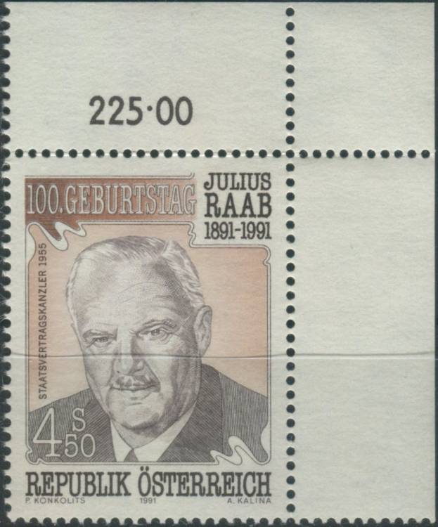 1991, Rakousko, 2047p, 100. výročí narození Juliuse Raaba ∗∗ r
