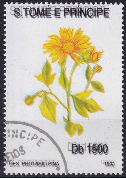 1992, Svatý Tomáš a Princův ostrov, 1331VV, Výplatní známka: Fauna a flora - Žlutá květina ⊙