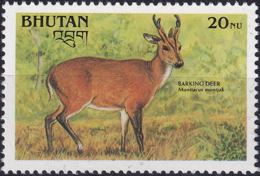 1990, Bhútán, 1325, Ohrožení savci: Muntiacus muntjak ✶✶