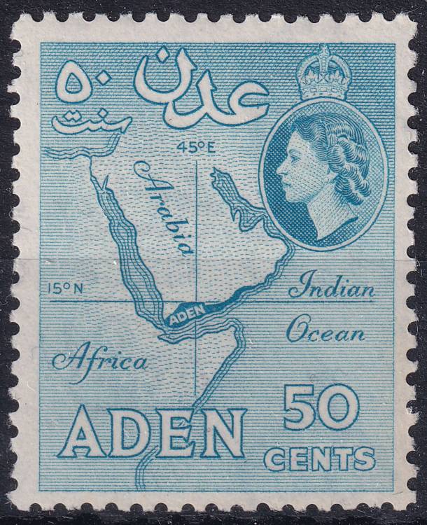 1953, Aden, 54, Výplatní: královna Alžběta II. - mapa Adenu ✶✶