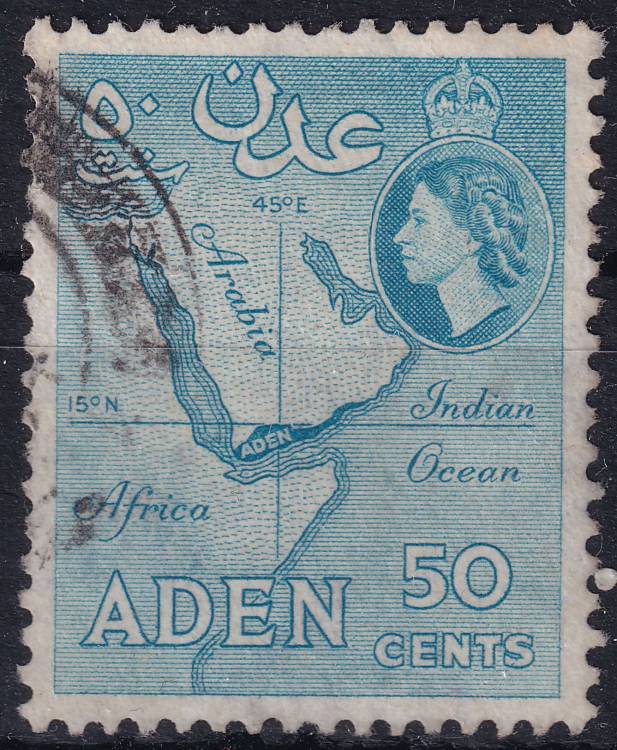 1953, Aden, 54, Výplatní: královna Alžběta II. - mapa Adenu ⊙