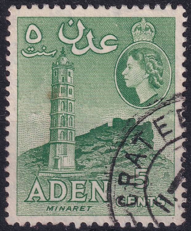 1956, Aden, 62C, Výplatní: královna Alžběta II. - minaret ⊙