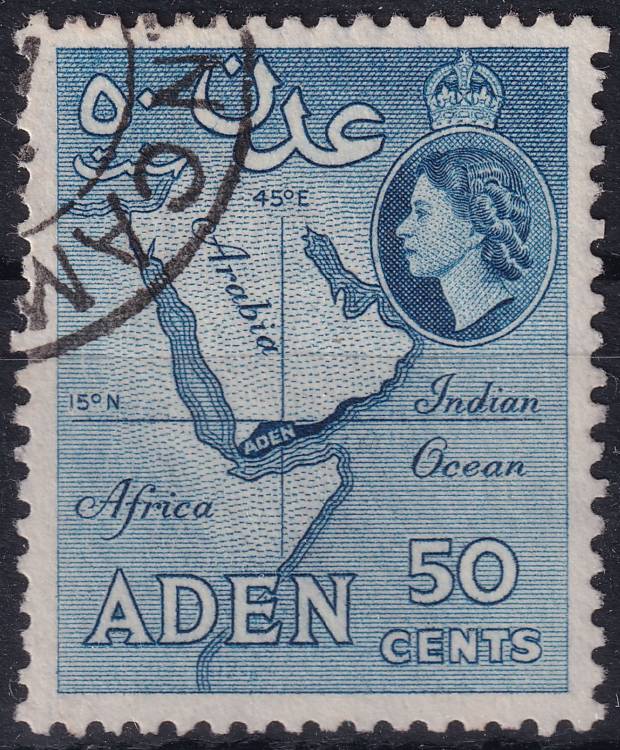 1955, Aden, 67A, Výplatní: královna Alžběta II. - mapa Adenu ⊙