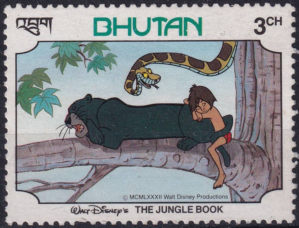1982, Bhútán, 0783, Animovaný film Walta Disneye "Kniha džunglí": Ká pozoruje Mauglího a Baghíru ✶✶