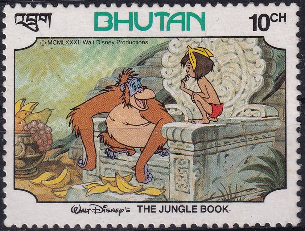 1982, Bhútán, 0786, Animovaný film Walta Disneye "Kniha džunglí": Mauglí a král Louie ✶✶