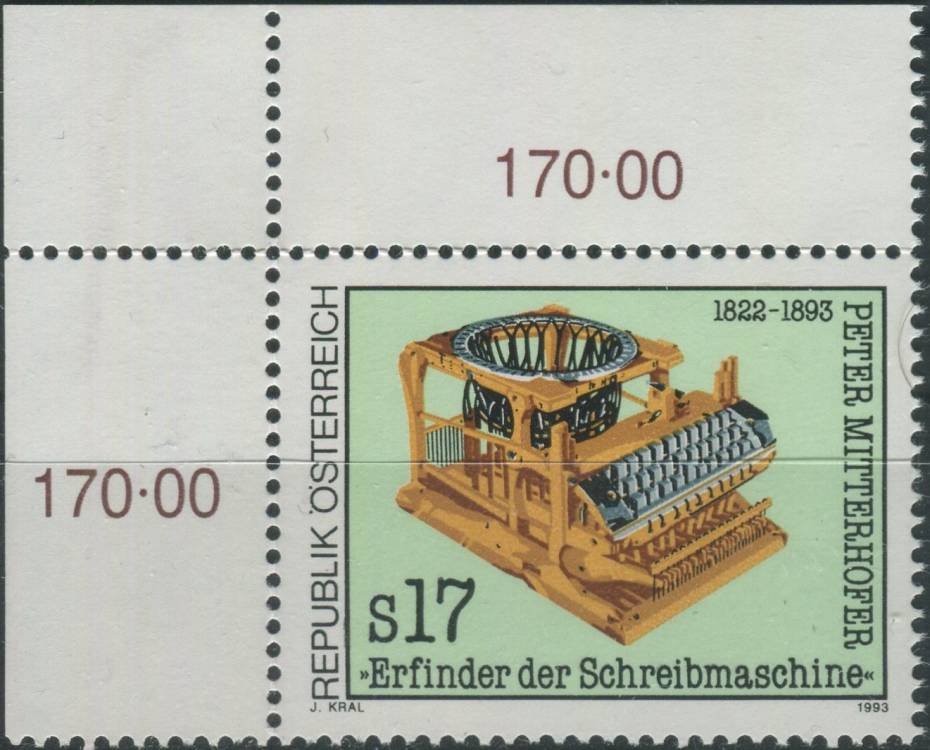 1993, Rakousko, 2088p, 100. výročí úmrtí Petera Mitterhofera ∗∗ r