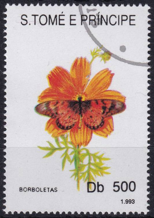 1993, Svatý Tomáš a Princův ostrov, 1400, Motýli opylující květy: Nymphalis sp. ⊙