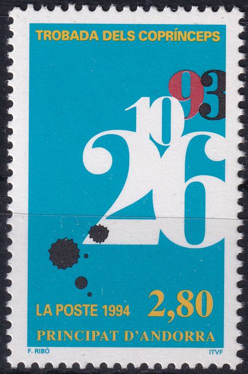 1994, Andorra (Francouzská pošta), 0474, 1. výročí setkání zástupců knížectví Andorra ✶✶