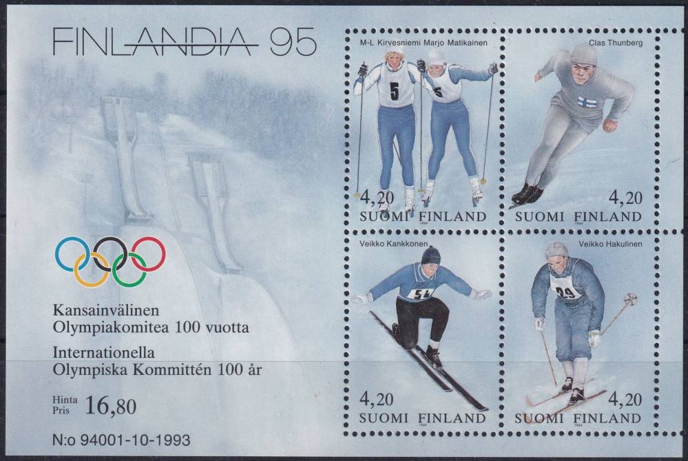 1994, Finsko, A11, Mezinárodní výstava poštovních známek FINLANDIA ´95, Helsinki; 100 let Mezinárodního olympijského výboru (IOC) - Finští olympijští vítězové ✶✶
