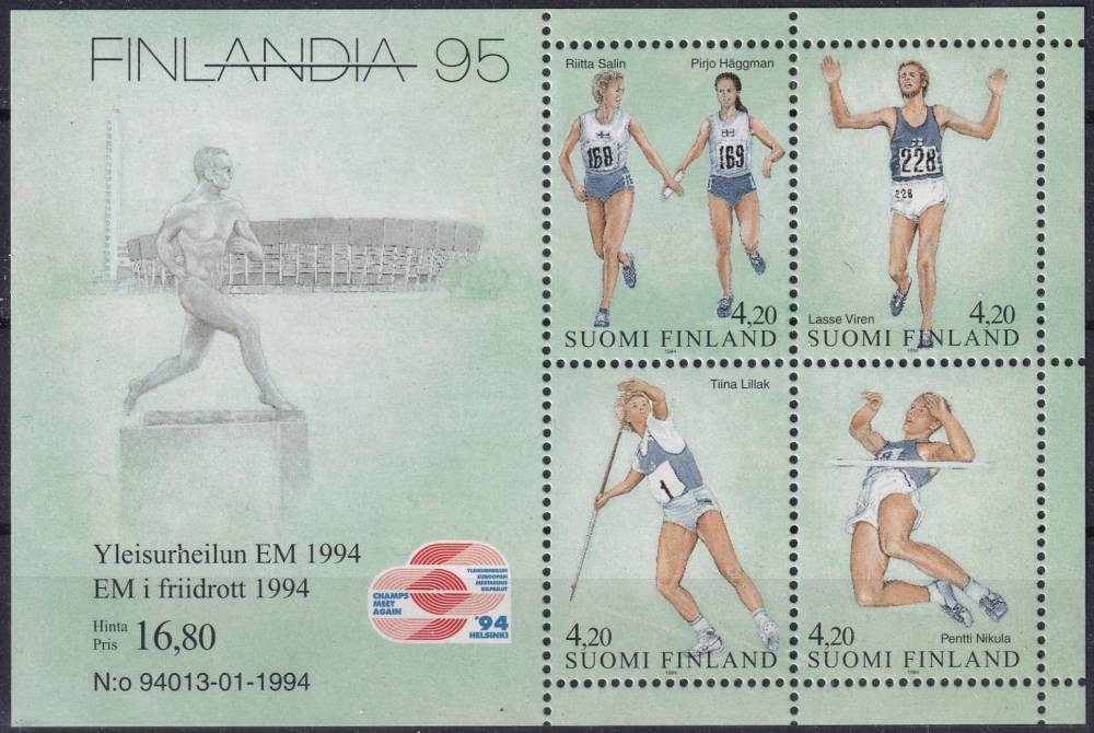 1994, Finsko, A12, Mezinárodní výstava poštovních známek FINLANDIA ´95, Helsinky - Mistrovství Evropy v lehké atletice, Helsinky ✶✶