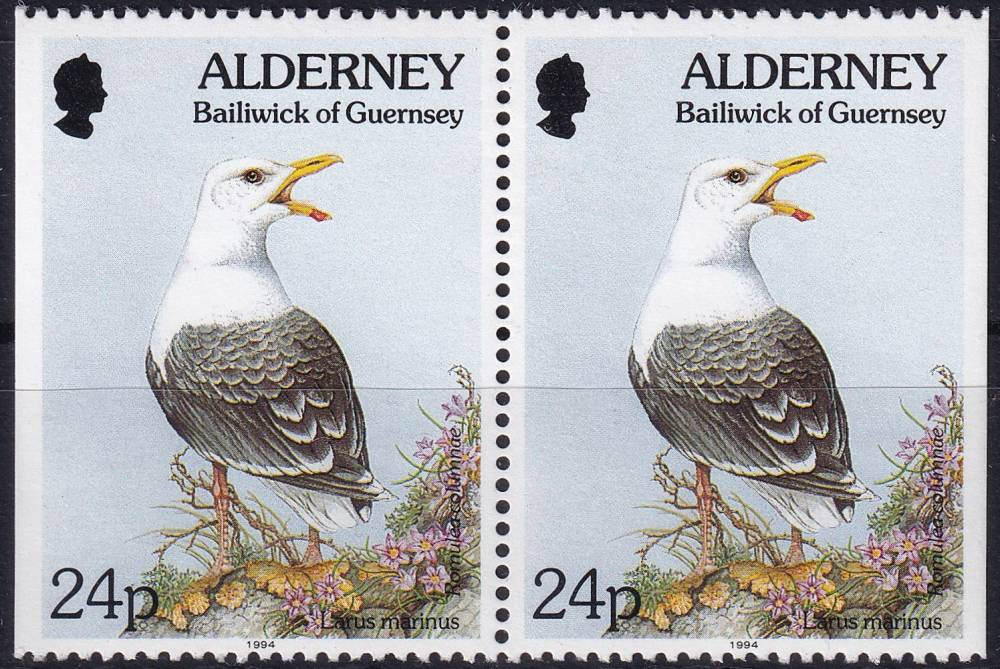 1994, Guernsey-Alderney, 0077StDI+Dr, Výplatní známka: Fauna a flora - Larus marinus, Romulea columnae ✶✶