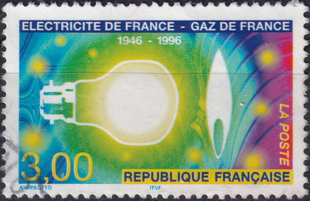 1996, Francie, 3140, 50. výročí znárodnění elektroenergetického a plynárenského průmyslu ⊙