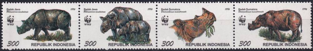 1996, Indonésie, 1648/1651St, Celosvětová ochrana přírody: Nosorožec Sumaterský a Jávský ✶✶