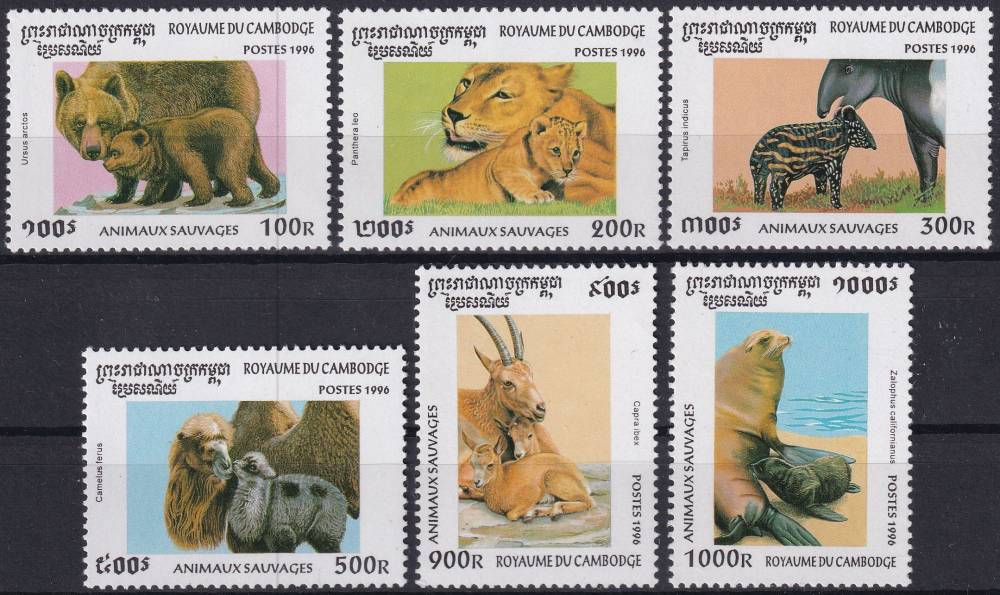 1996, Kambodža, 1638/1643, Divoká zvířata a jejich potomci ✶✶