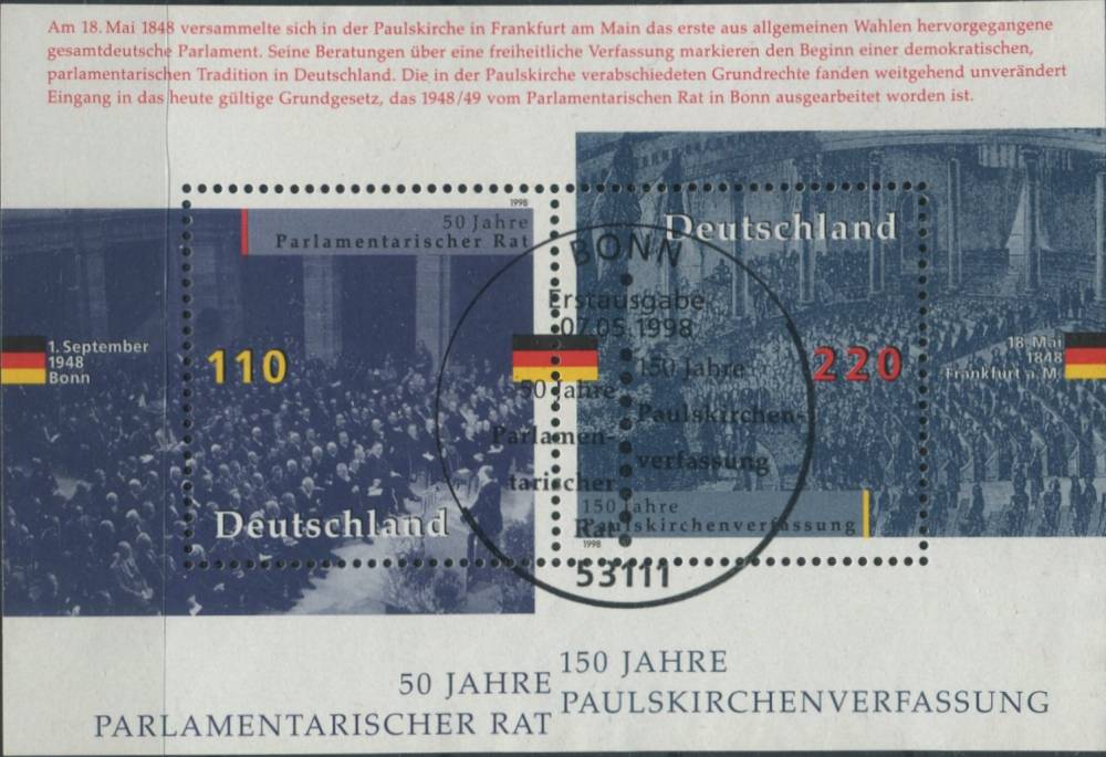 1998, Německo, A043, 50 let Parlametní rady, 150 let Ústavy ⊙
