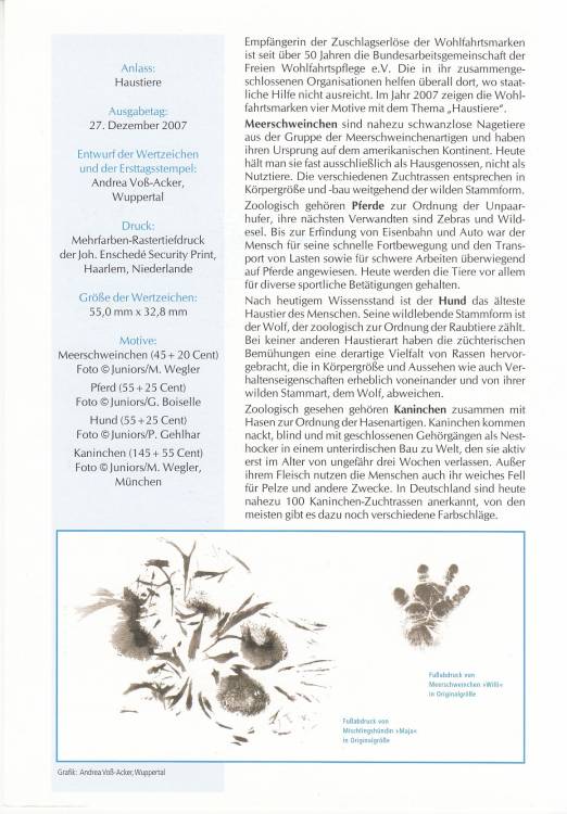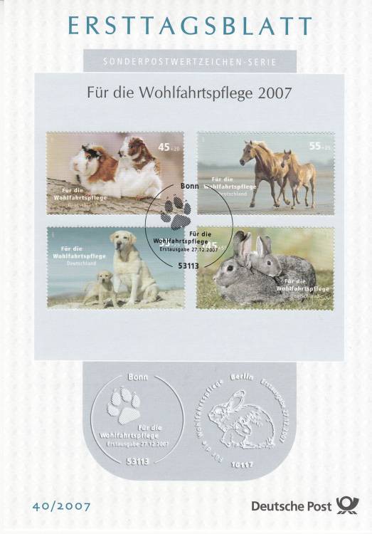 2007, Německo, ETB40/2007, Dobročinné známky - Domácí zvířata