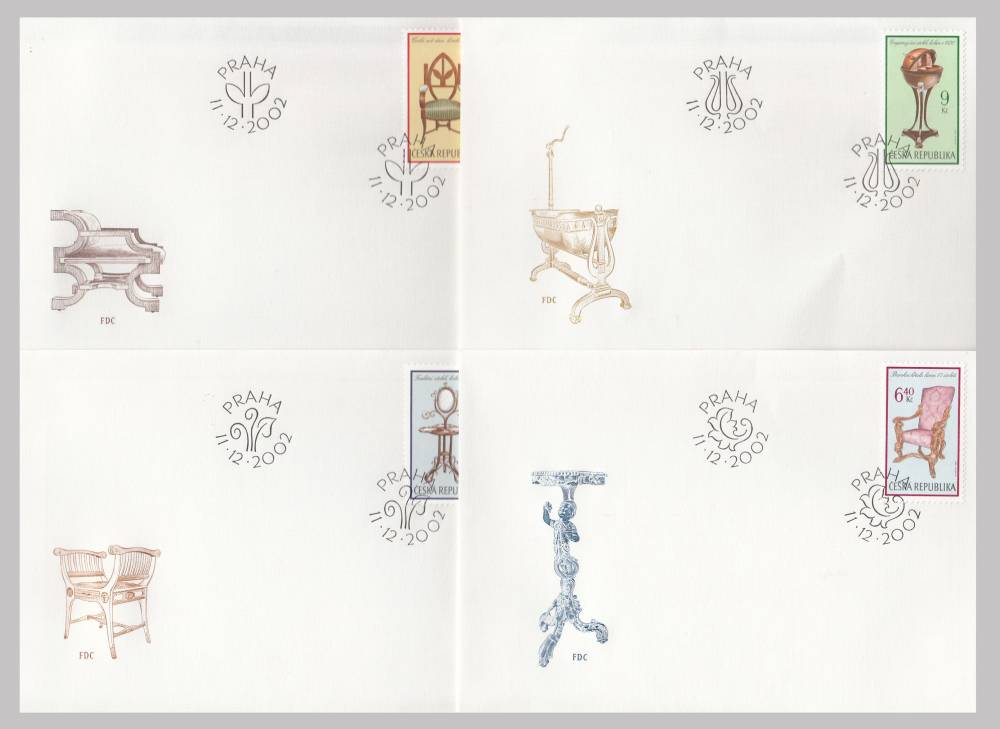 2002, Česko, FDC0339/0342, Slohový nábytek