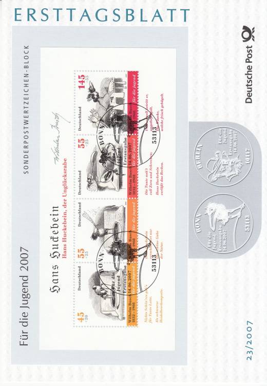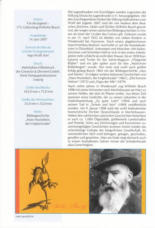 2007, Německo, ETB23/2007, Dětem - 175. výročí narození Wilhelma Busche