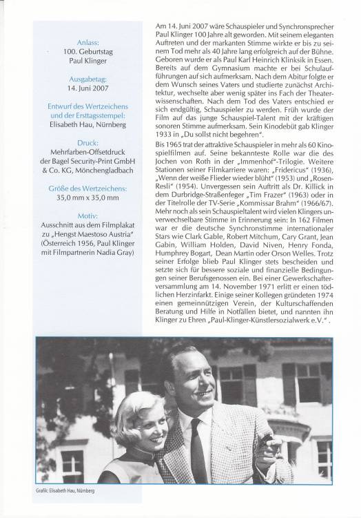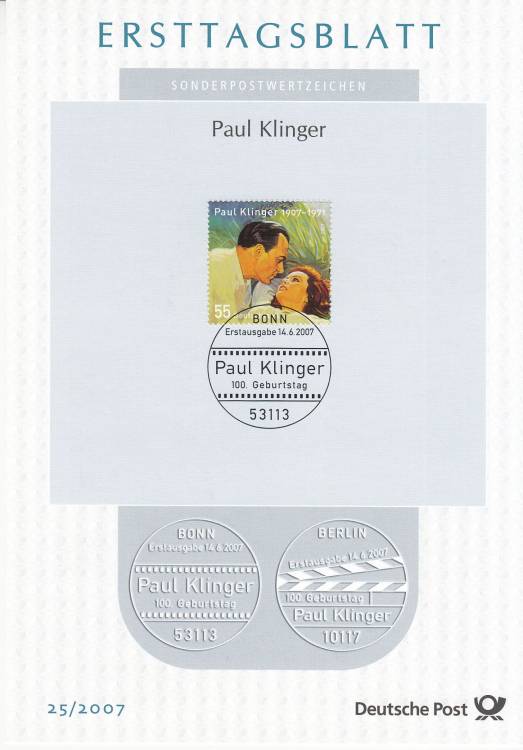 2007, Německo, ETB25/2007, 100. výročí narozeniny Paula Klingera