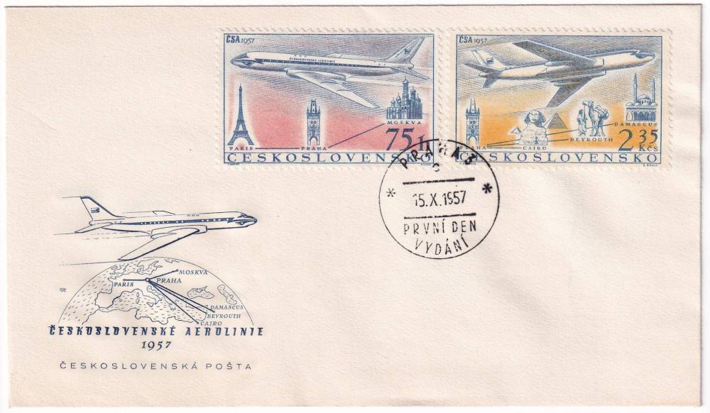 1957, ČSR II, FDC15/57, Letecké známky: Zahájeni dálkové přepravy ČSA
