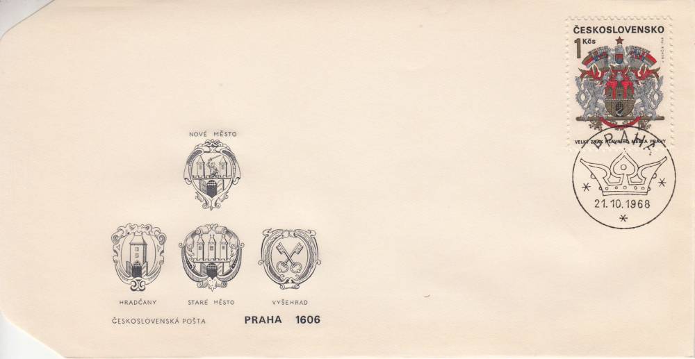 1968, ČSR II, FDC25J/68, Znaky československých měst