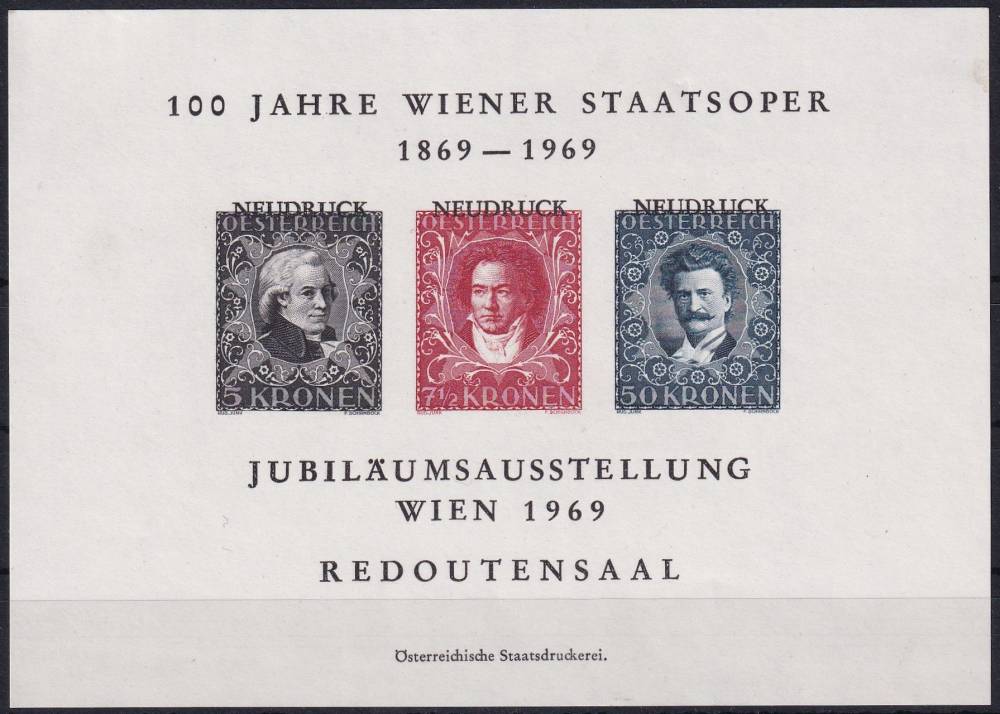 1969, Rakousko, PT, Jubilejní výstava "100 let vídeňské Státní opery 1869 až 1969" (✶)