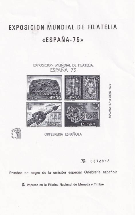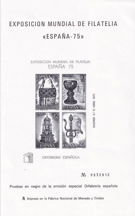1975, Španělsko, PTA019/020, Mezinárodní výstava poštovních známek ESPAŇA ´75, Madrid: Španělská zlatnická práce (∗)