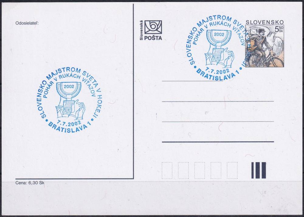 2002, Slovensko, CDV062, Poštovní motiv: Slovensko mistrem světa v hokeji ⊙
