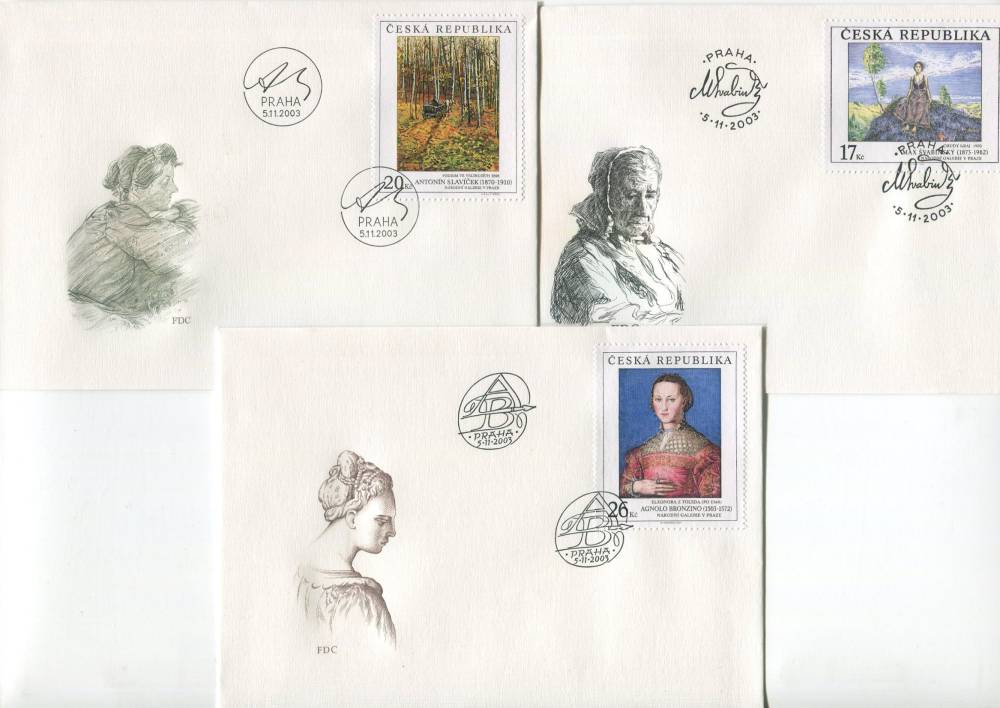 2003, Česko, FDC0383/0385, Umělecká díla na známkách