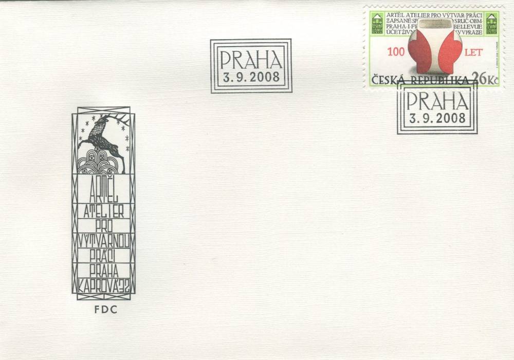 2008, Česko, FDC0572, 100 let sdružení výtvarvníků užitého umění Artěl