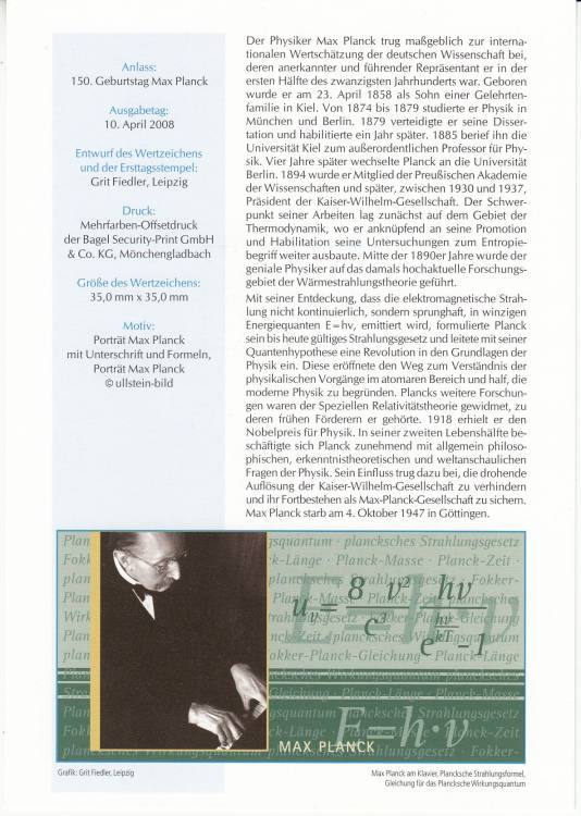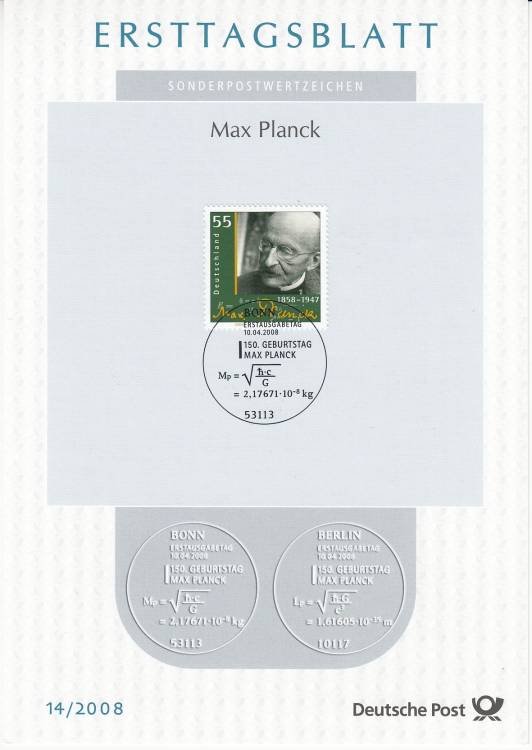 2008, Německo, ETB14/2008, 150. výročí narození Maxe Plancka