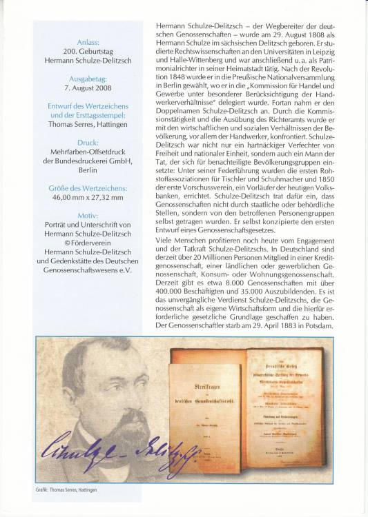 2008, Německo, ETB28/2008, 200. výročí narození hermanna Schulze-Delitzsche
