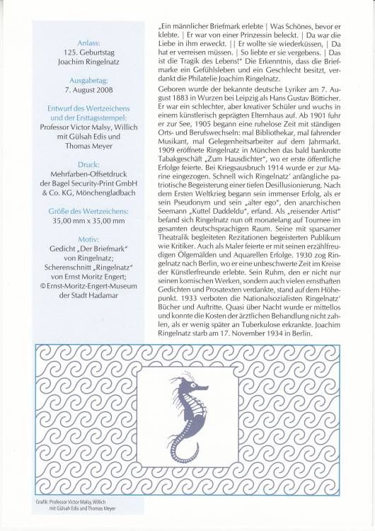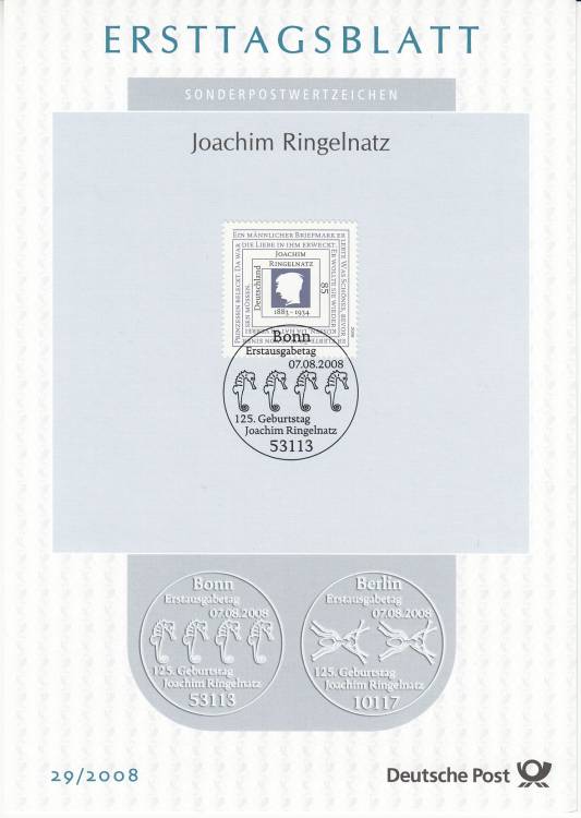 2008, Německo, ETB29/2008, 125. výročí narození Joachima Ringelnatze