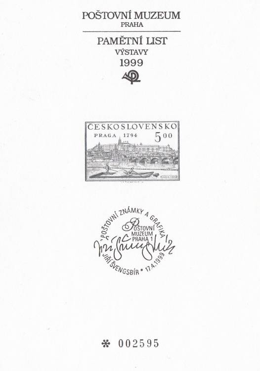 1999, Česko, PTM013, 50. výročí známkové tvorby Jiřího Švengsbíra
