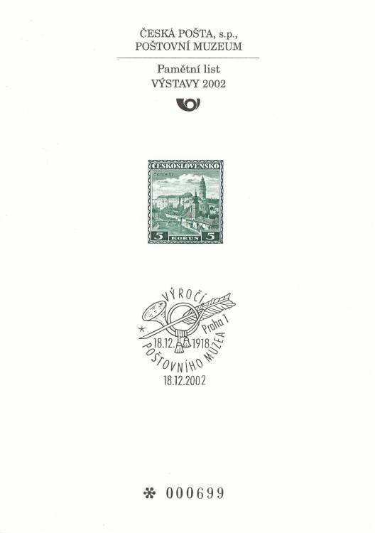 2002, Česko, PTM019, 84. výročí založení Poštovního muzea v Praze