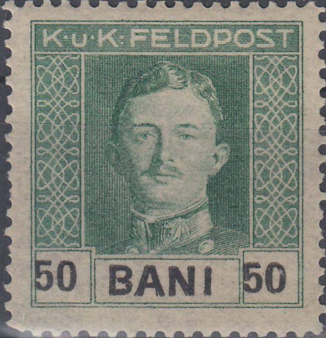 1918, Rakousko (Polní pošta v Rumunsku), 28, Výplatní známka: Císař Karel I. ✶