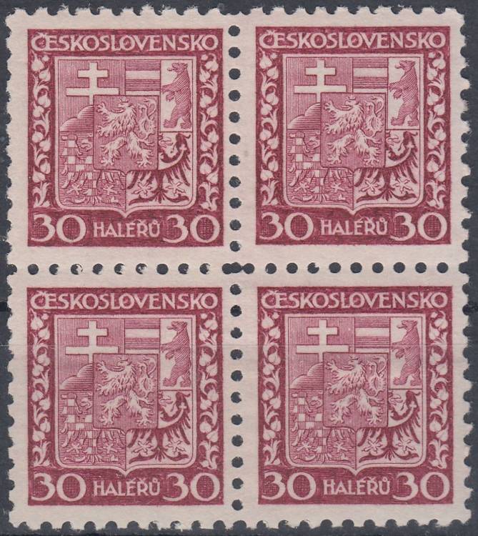 1929, ČSR I, 0252, Výplatní známka: Státní znak ✶✶ 4blok