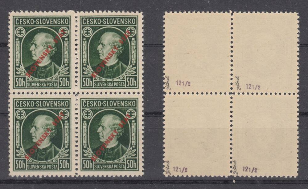 1939, Slovenský štát, 023A, Andrej Hlinka (kresba a s přítiskem SLOVENSKÝ ŠTÁT), 4blok ✶✶