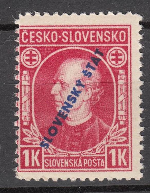 1939, Slovenský štát, 024AVV, Andrej Hlinka (kresba a s přítiskem SLOVENSKÝ ŠTÁT) ✶✶