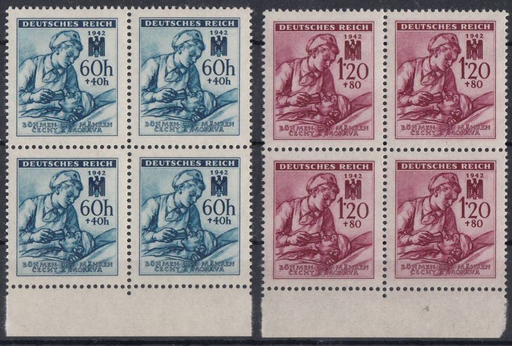 1942, Protektorát, 100/101, Německý červený kříž (III. vydání), 4bloky, o D, **