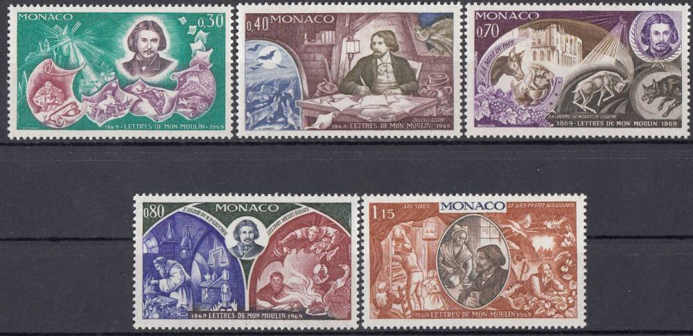 1969, Monako, 0941/0945, 100. výročí vydání "Lettres de mon Moulin" od Alphonse Daudeta ✶✶