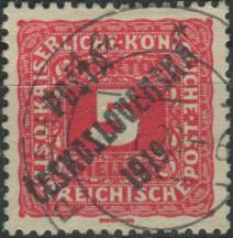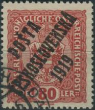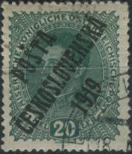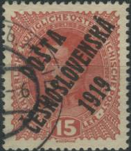 1919, ČSR I, 0039, Pošta československá 1919: Výplatní známka malého formátu z let 1916-1918 (Císař Karel I.) ⊙