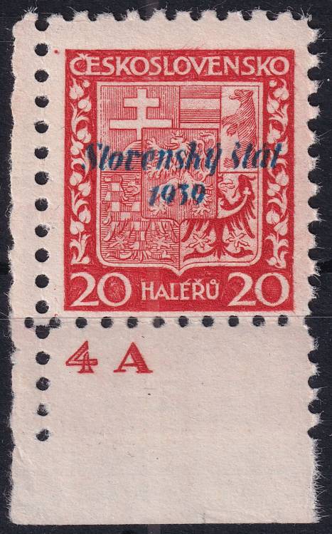 1939, Slovenský stát, 004DČ, Výplatní známka: Státní znak ✶✶ L D