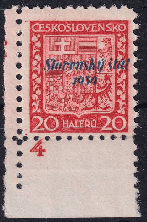1939, Slovenský stát, 004DČVV, Výplatní známka: Státní znak ✶✶ L D