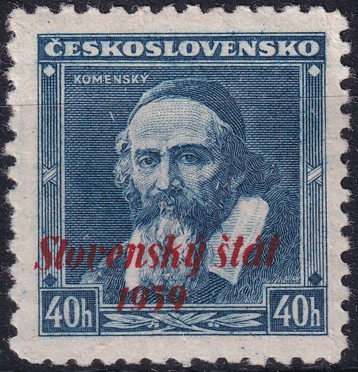 1939, Slovenský stát, 007, Výplatní známka: J. Á. Komenský ✶