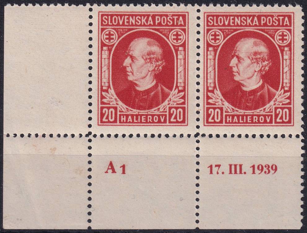 1939, Slovenský stát, 027A, Výplatní známka: Andrej Hlinka ✶✶ DČ ◫ L D