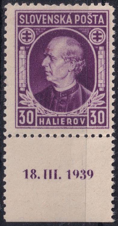 1939, Slovenský stát, 028A, Výplatní známka: Andrej Hlinka ✶✶ DČ o D
