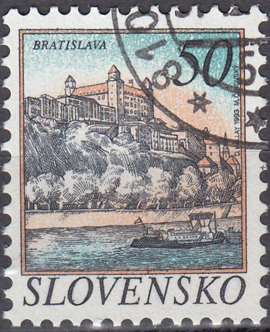 1993, Slovensko, 0025, Výplatní známka: Města - Bratislava, ⊙