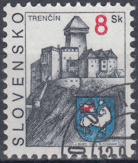 1995, Slovensko, 0077, Výplatní známka: Města - Trenčín, ⊙