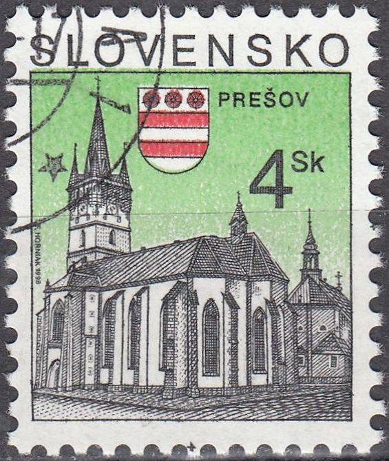 1998, Slovensko, 0166, Výplatní známka: Města - Prešov, ⊙